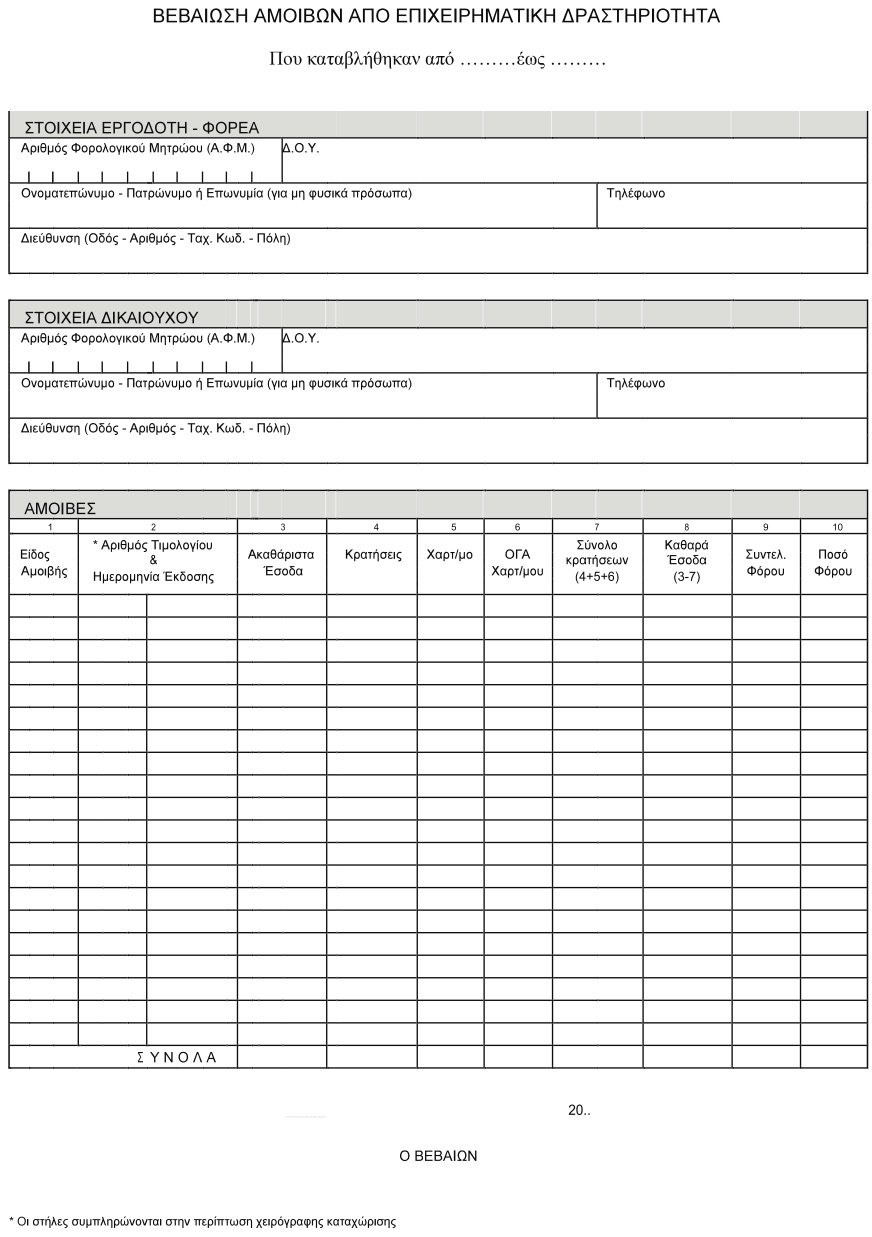 Ορισμός τύπου και περιεχομένου της βεβαίωσης αμοιβών από επιχειρηματική δραστηριότητα (΄Εντυπο Φ-01.043)